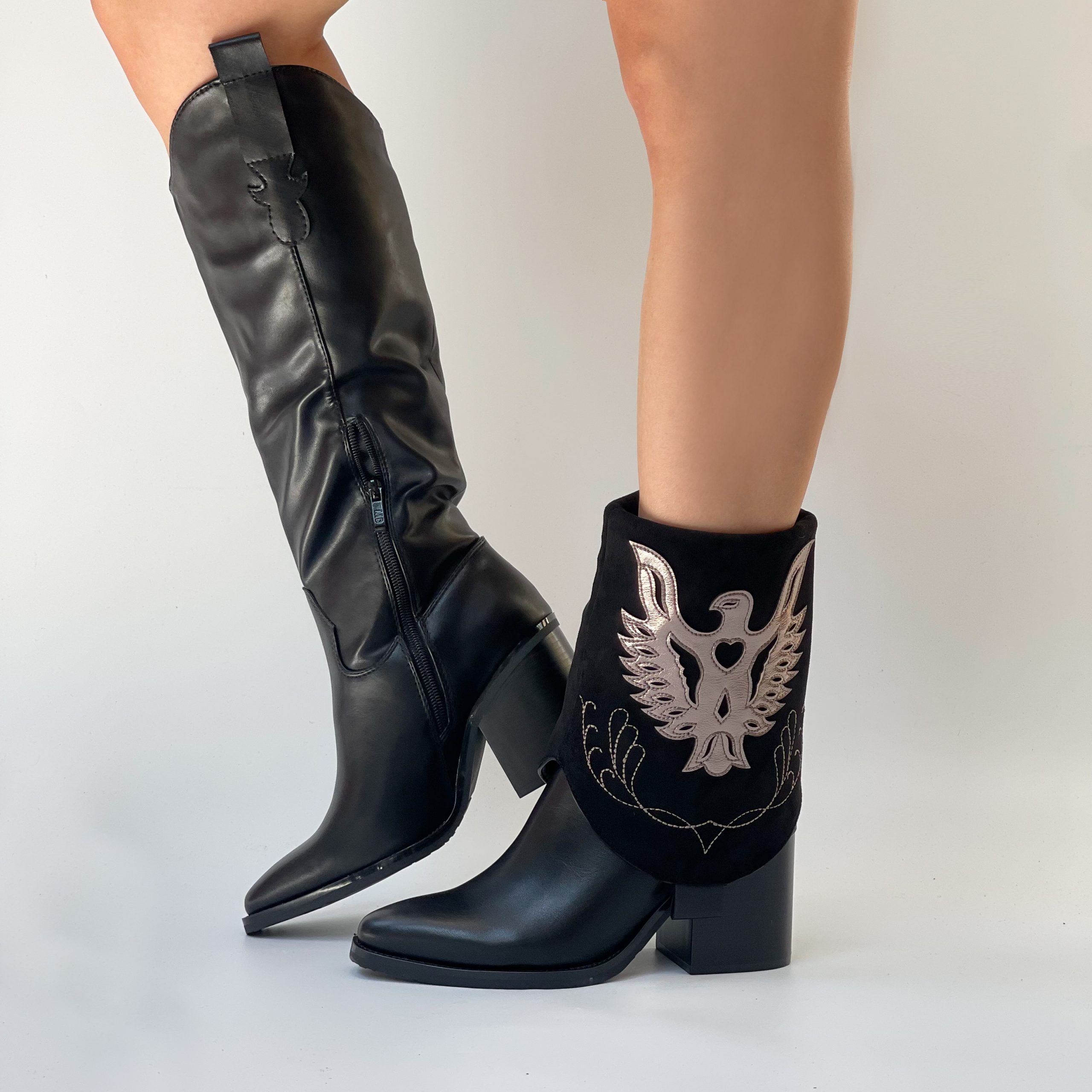 Botas botines texanas negras 2 en 1