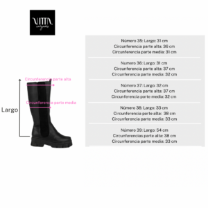 Ideal para piernas delgadas, ya que es angosta en la parte de la pierna. La plataforma es muy cómoda y ligera. Si estas interesada puedes ver nuestras botas disponibles en la sección «Botas y bucanera»