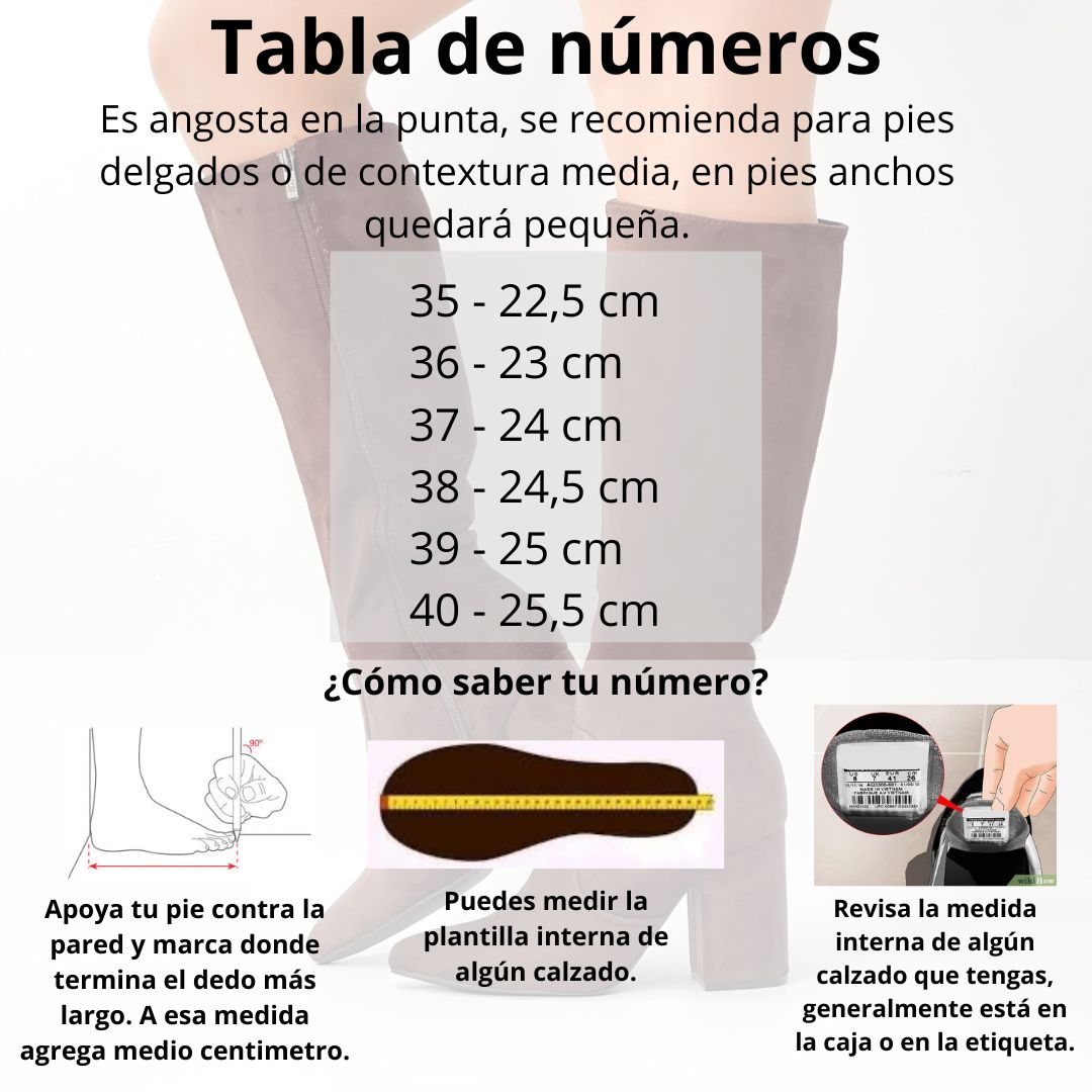 • Horma: Se recomienda para pies delgados o de contextura media, en pies anchos quedará pequeña, ya que es angosta.