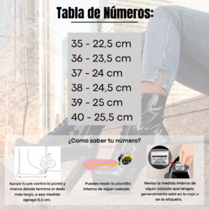 • Horma: Es un poco angosto en la punta, en alguien de pies anchos se recomienda llevar 1 numero mas, pies delgados o de contextura media se recomienda llevar el numero que se suele usar.