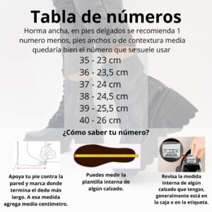 • Horma ancha, en pies delgados quedaría bien 1 número menos, en pies anchos o de contextura media/normal quedaría bien el número que se suele usar.