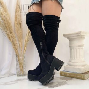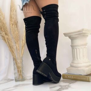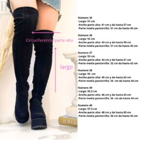 Bota súper elasticada para todo tipo de piernas. La plataforma es súper liviana y cómoda, no se siente alta. También tiene ajuste en la parte alta para aquellas que tienen piernas delgadas.
