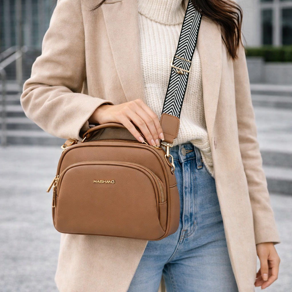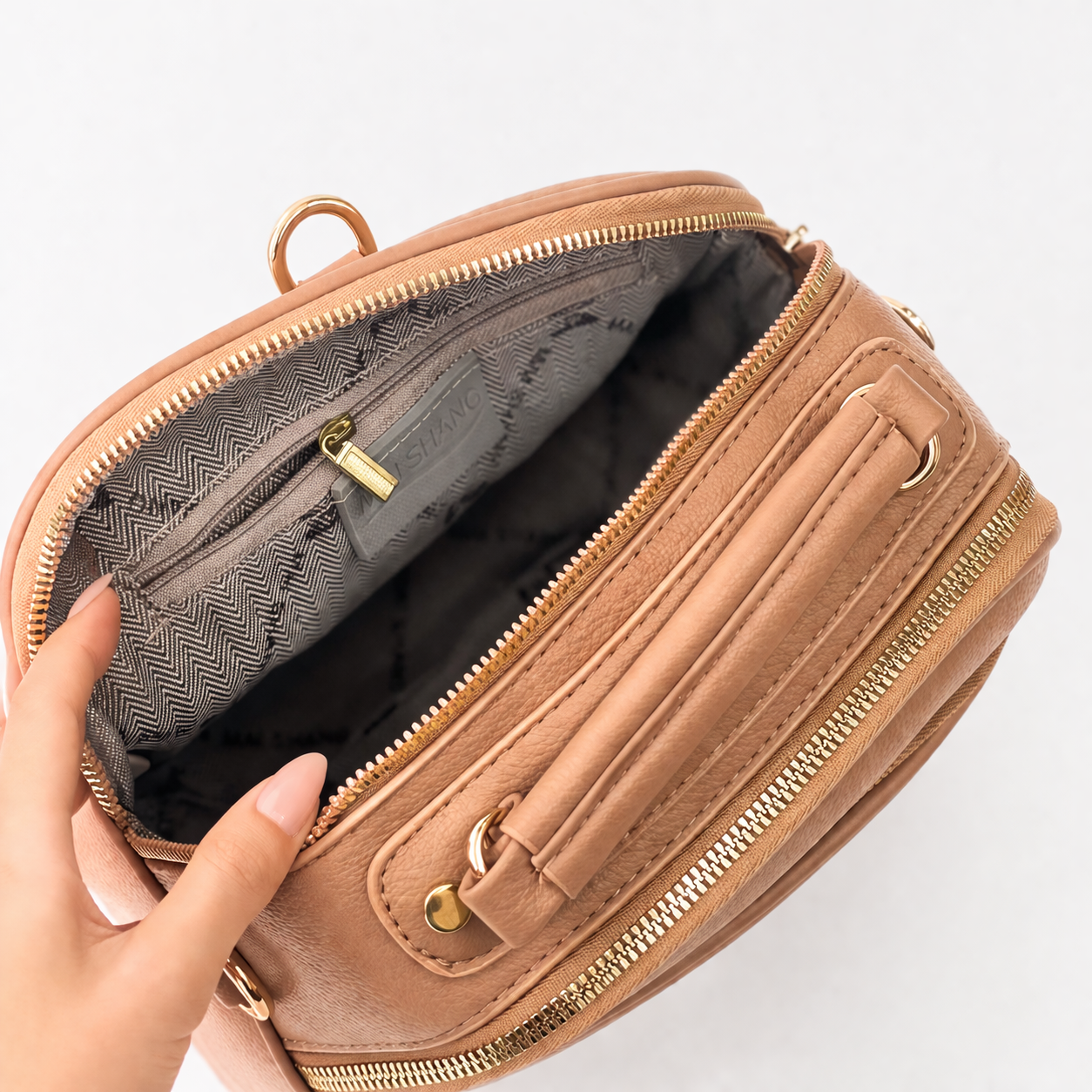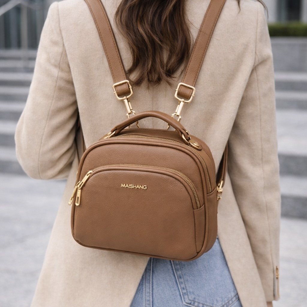 Cartera de diseño muy versátil, que podrás usar como bandolera o como mochila. Su tamaño es mediano, lo cual es perfecto para el día a día.
