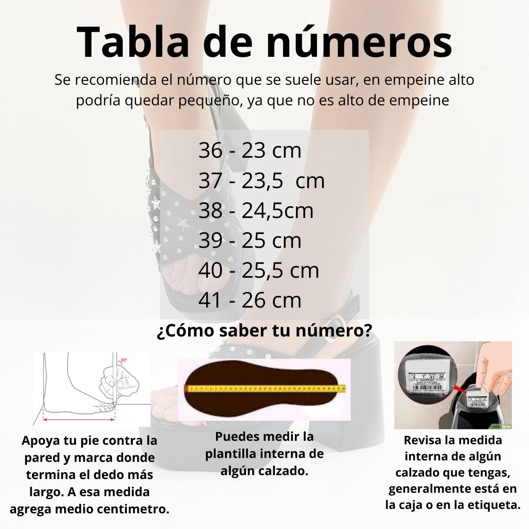 •Tipo de horma: Se recomienda el número que se suele usar, en empeine alto podría quedar pequeño, ya que NO es alto de empeine