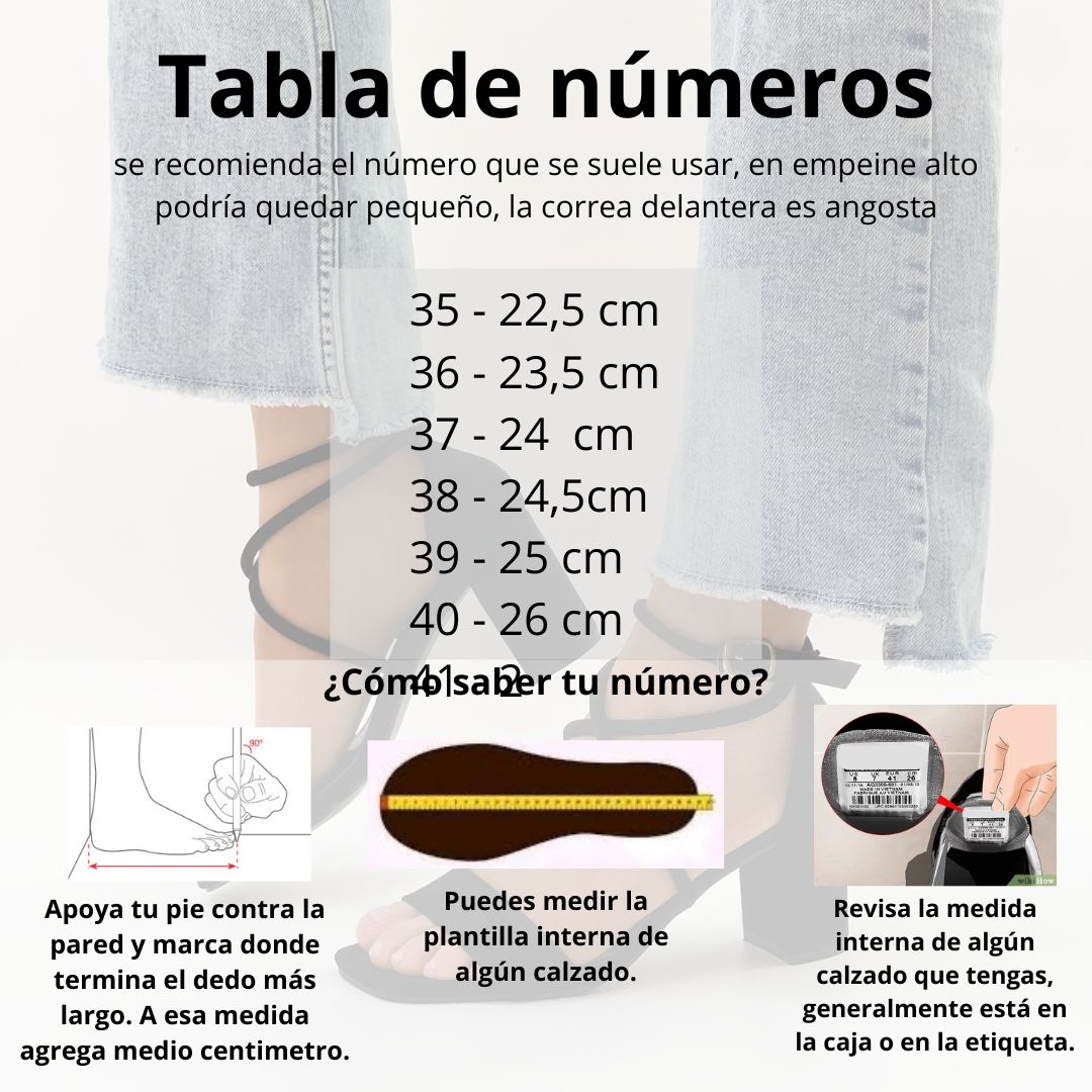 •Tipo de horma: Se recomienda el número que se suele usar, en empeine alto podría quedar pequeño, ya que la correa delantera es angosta.