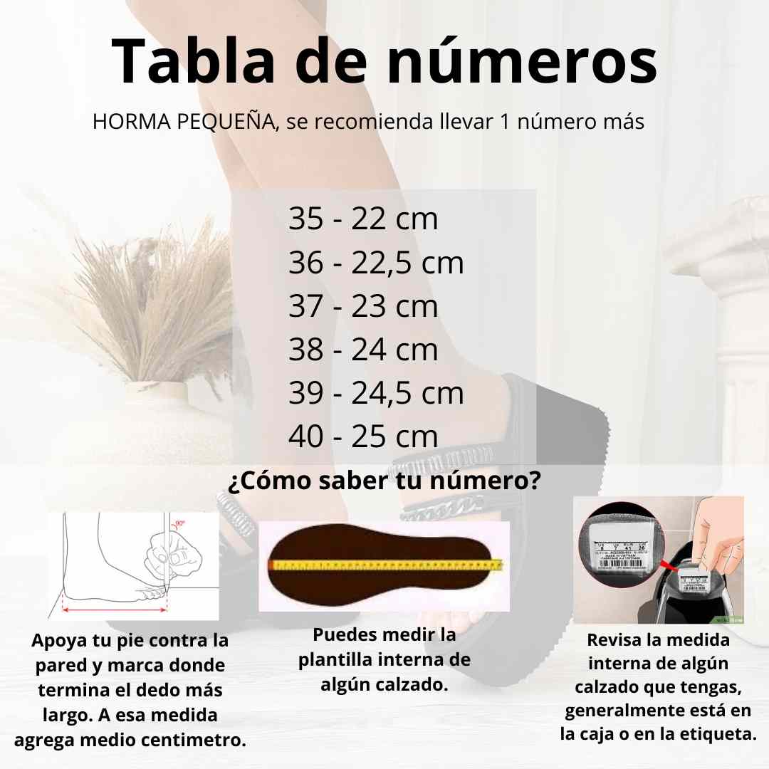 •HORMA PEQUEÑA, se recomienda llevar 1 número más.