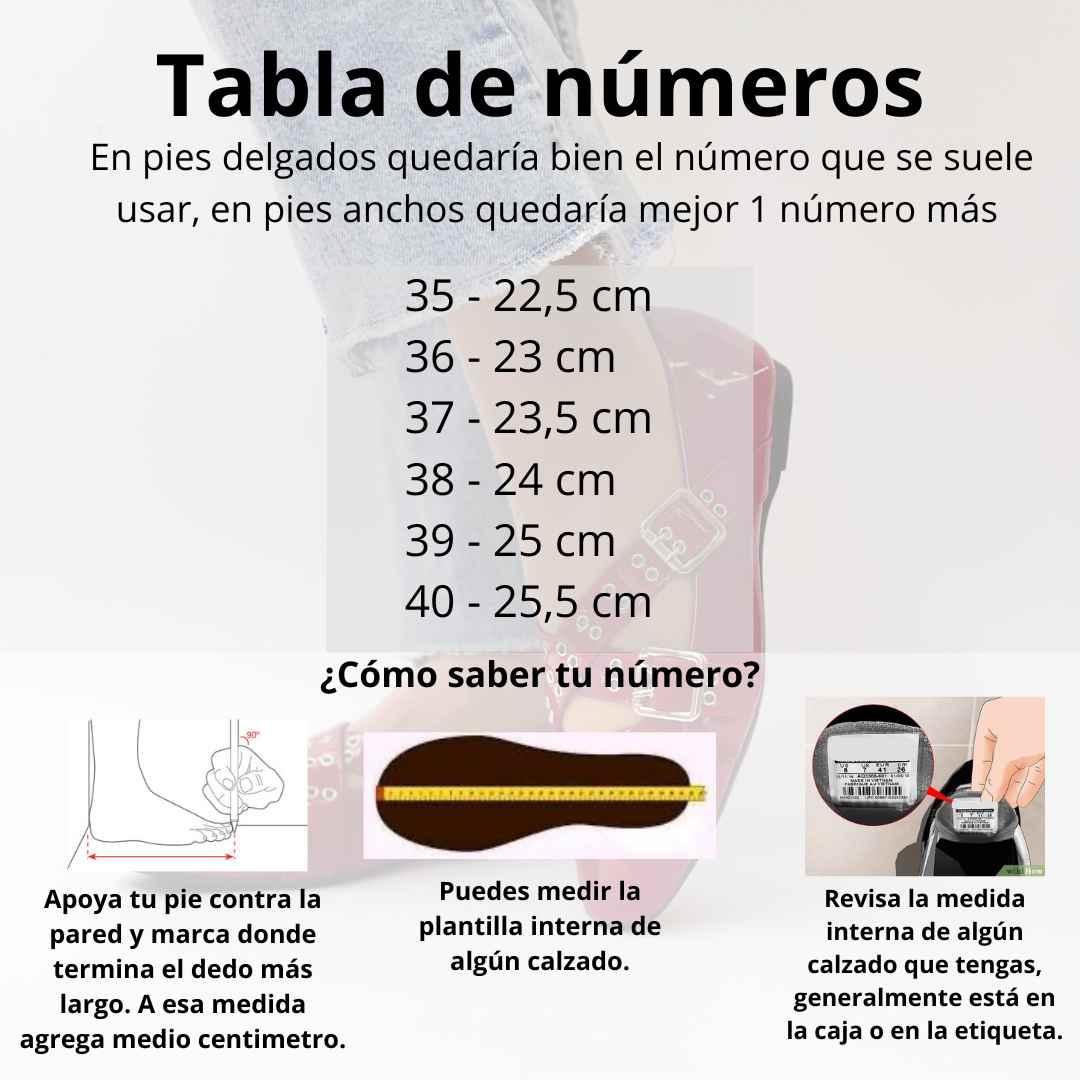 •Tipo de horma: Es angosto, en pies delgados quedaría bien el número que se suele usar, en pies anchos quedaría mejor 1 número más.